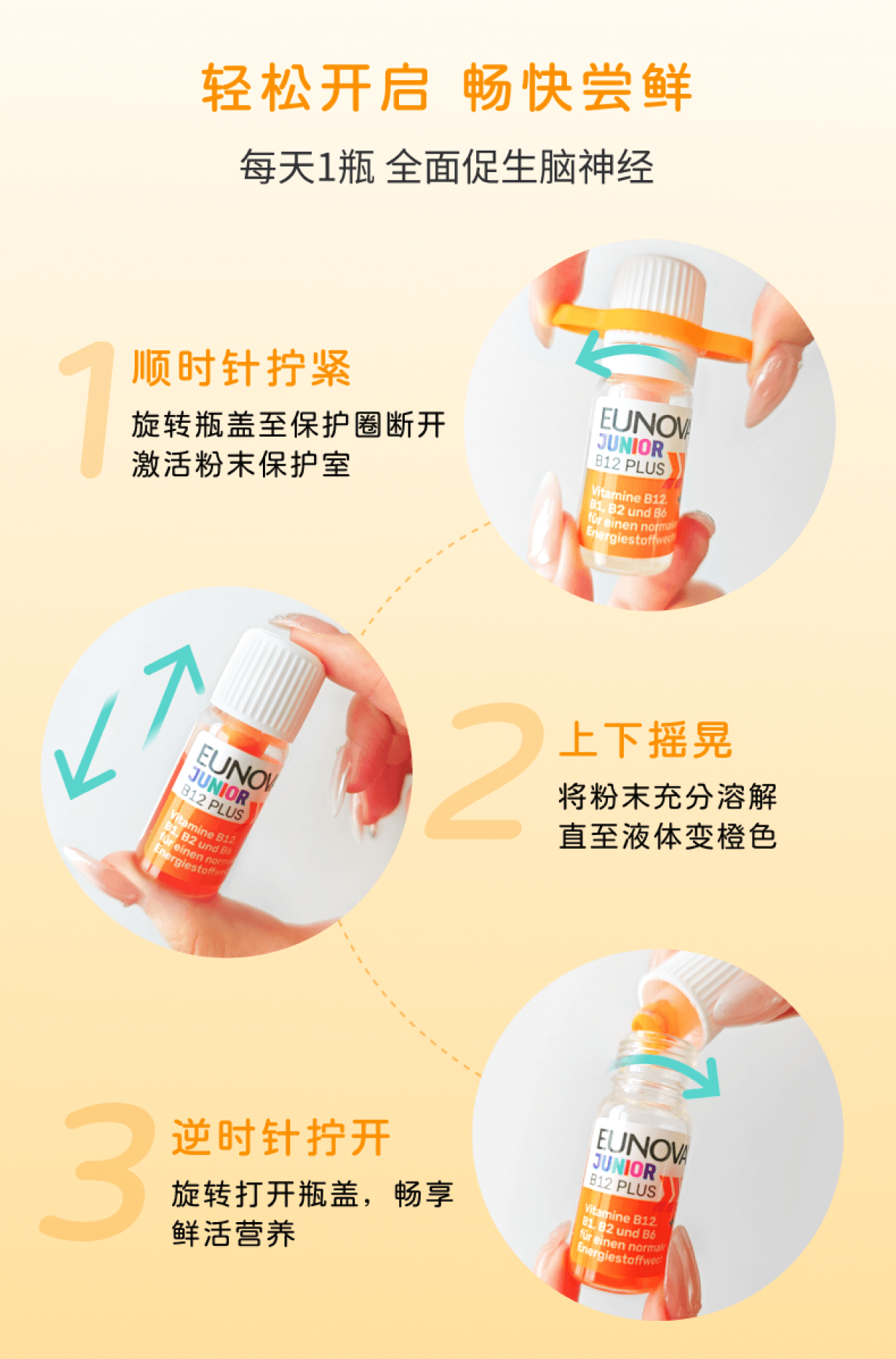 适用于8-14岁人群。每日1次,每次1瓶混合后使用。