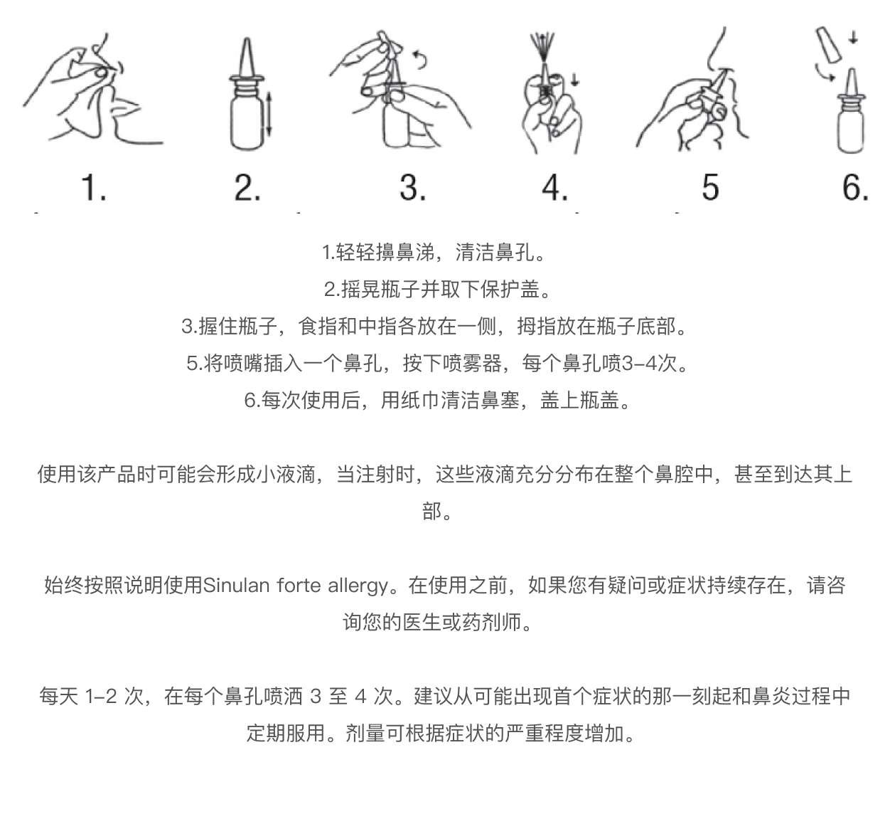 *本品不含任何药物成分,如抗组胺剂或类固醇。如果需要其他药物治疗,可同时使用本品。