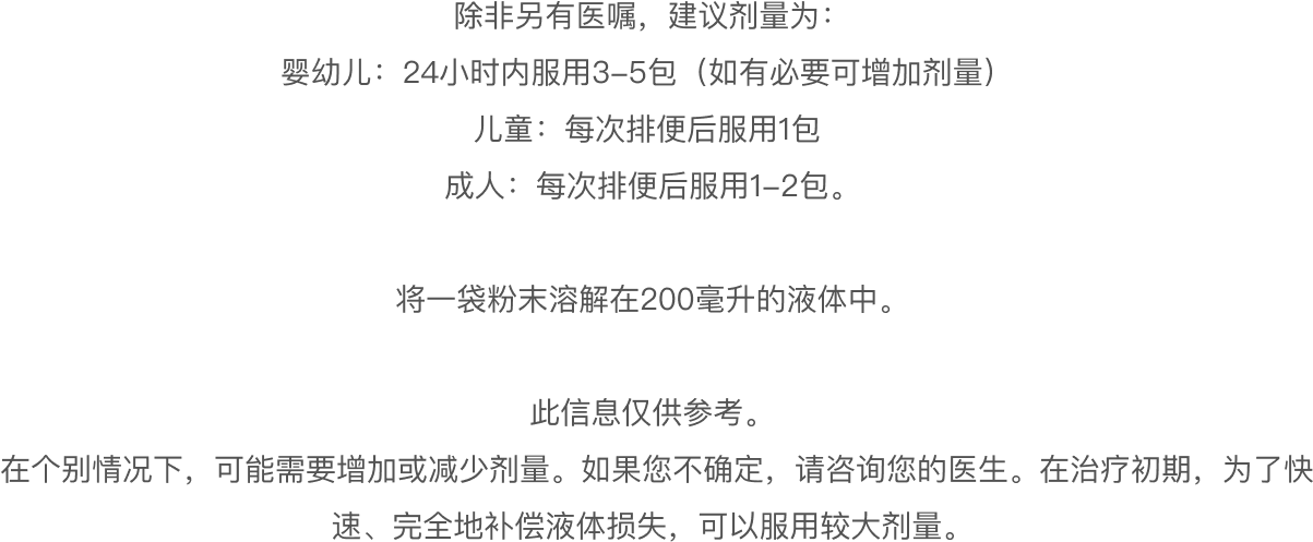 禁止使用产品的情况:对成分过敏/肠梗阻/呕吐/碱中毒/意识障碍/由于严重脱水休克/肾功能受损/糖吸收紊乱